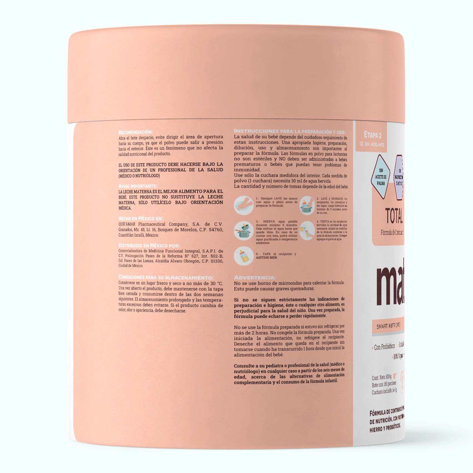 Es la continuación premium que acompaña el crecimiento de tu bebé a partir de los 12 meses, cuando inicia la alimentación sólida y sus necesidades nutricionales cambian. Inspirada en la filosofía de Total Baby Etapa 1, esta fórmula ajusta sus nutrientes para apoyar una mayor demanda energética, el crecimiento óseo y el desarrollo cognitivo, favoreciendo además una microbiota intestinal saludable y ofreciendo un perfil nutricional alineado con los requerimientos actuales para esta etapa.