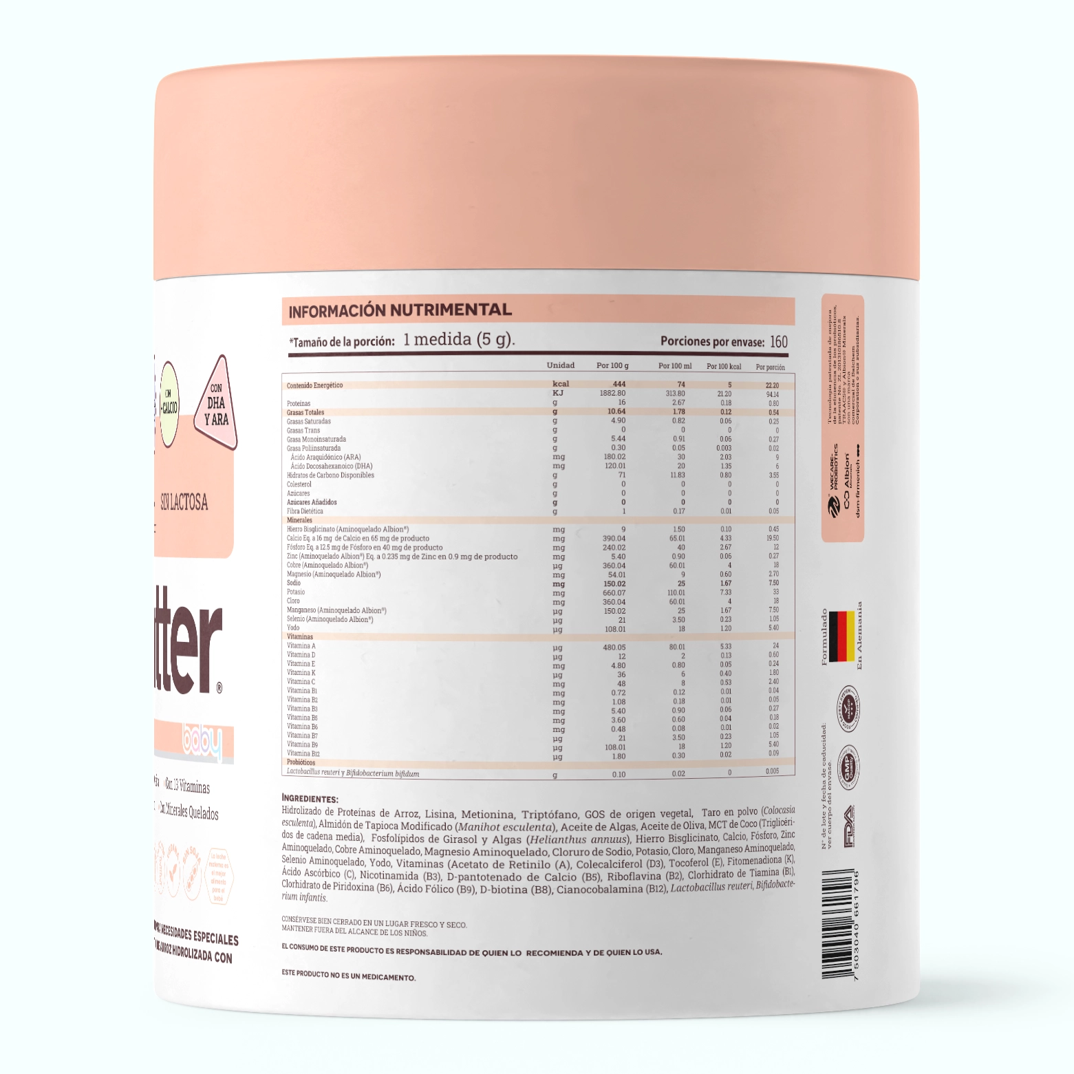 - Sin aceite de palma, sin lactosa, sin proteína bovina ni otros alérgenos comunes.