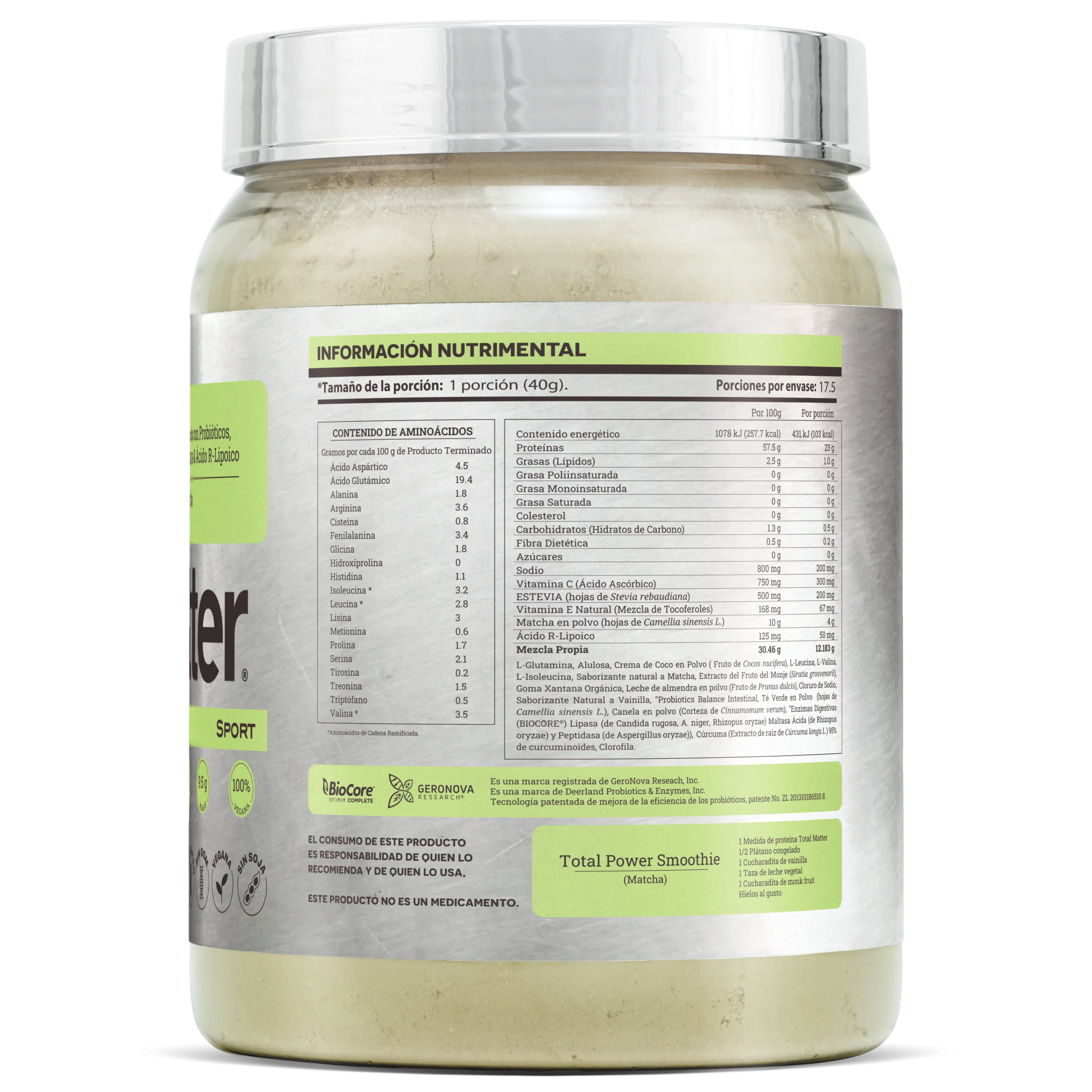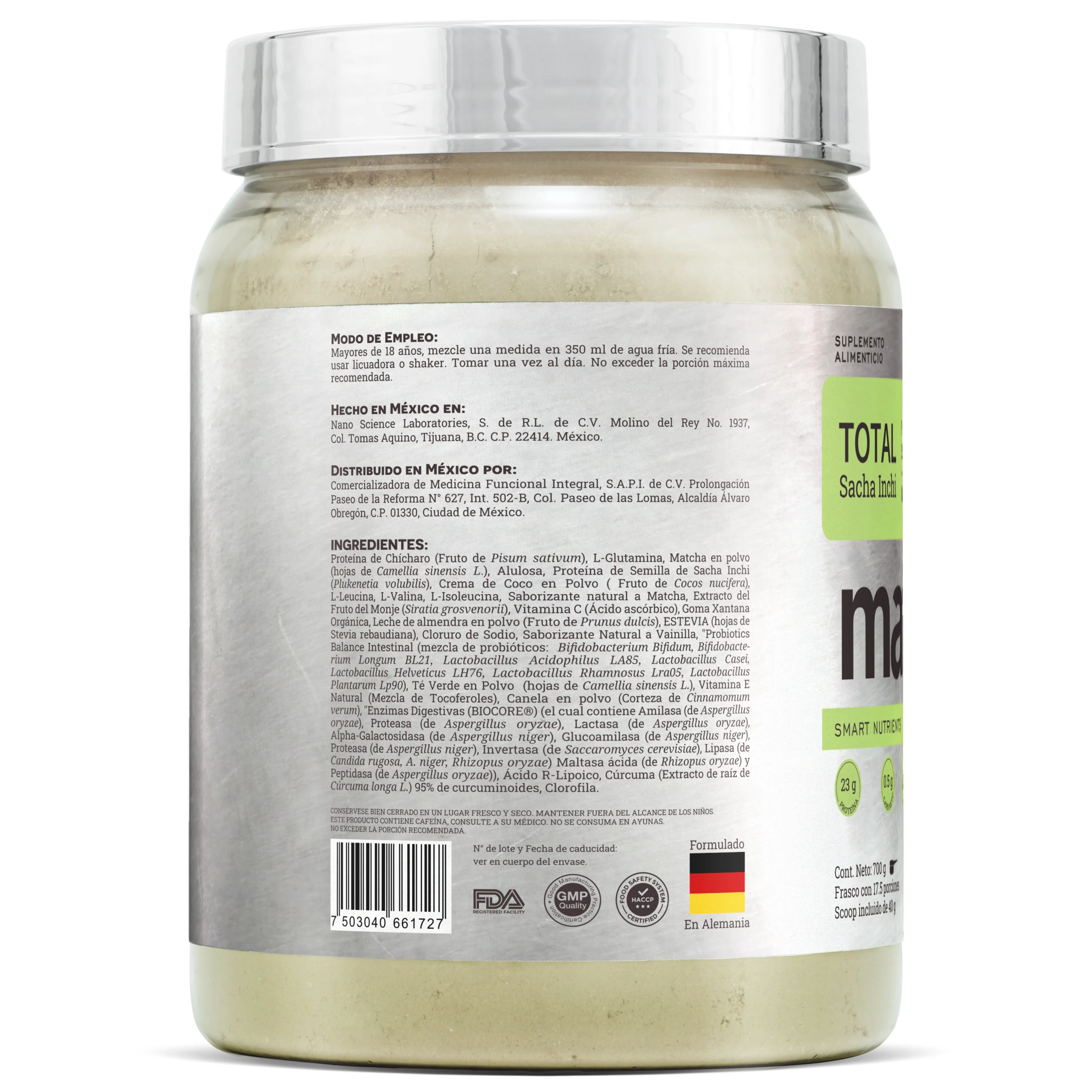 Total es una proteína vegetal completa que combina sacha inchi, chícharo y arroz para aportar un perfil equilibrado de aminoácidos esenciales que apoyan funciones clave como el metabolismo, la inmunidad y la regeneración muscular y ósea. Ofrece alta digestibilidad, fácil absorción y excelente tolerancia. Enriquecida con omega-3 y BCAAs.